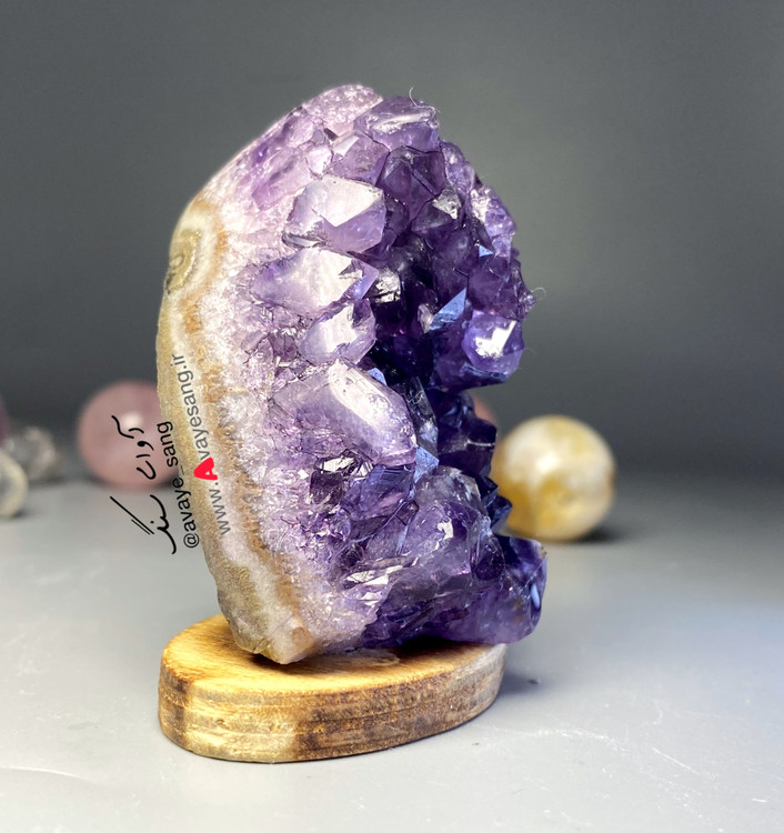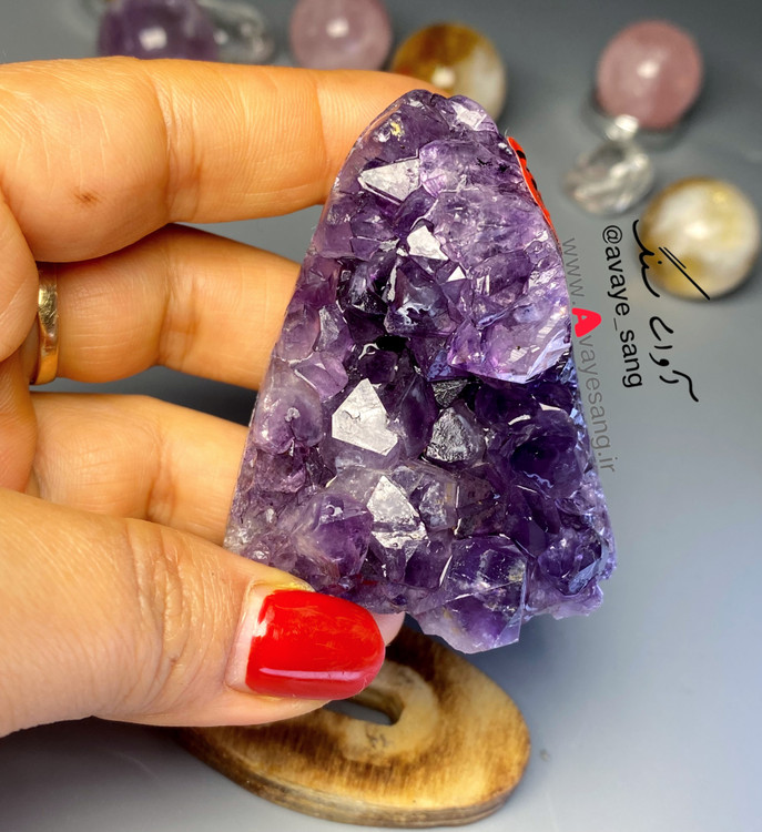 این تکه آمیتیس بلورهای درشت و خوشه ای مانندی داره که هر کدام چند وجهی هستند ،در ادامه عکسها ،تصویر آن را در دست نشان دادیم.