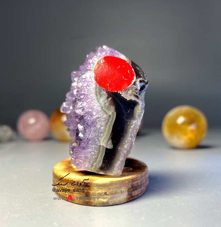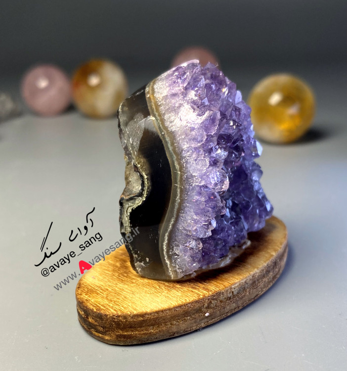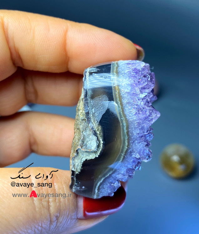 این راف آمیتیس بسیار خاصی هست ، لایه ای از عقیق شفاف وباکیفیتی پشت ژئودهای آمیتیس شکل گرفته که سنگ را خاص زیباتر کرده ، در ادامه عکسها ،تصویر آن را در دست نشان دادیم.