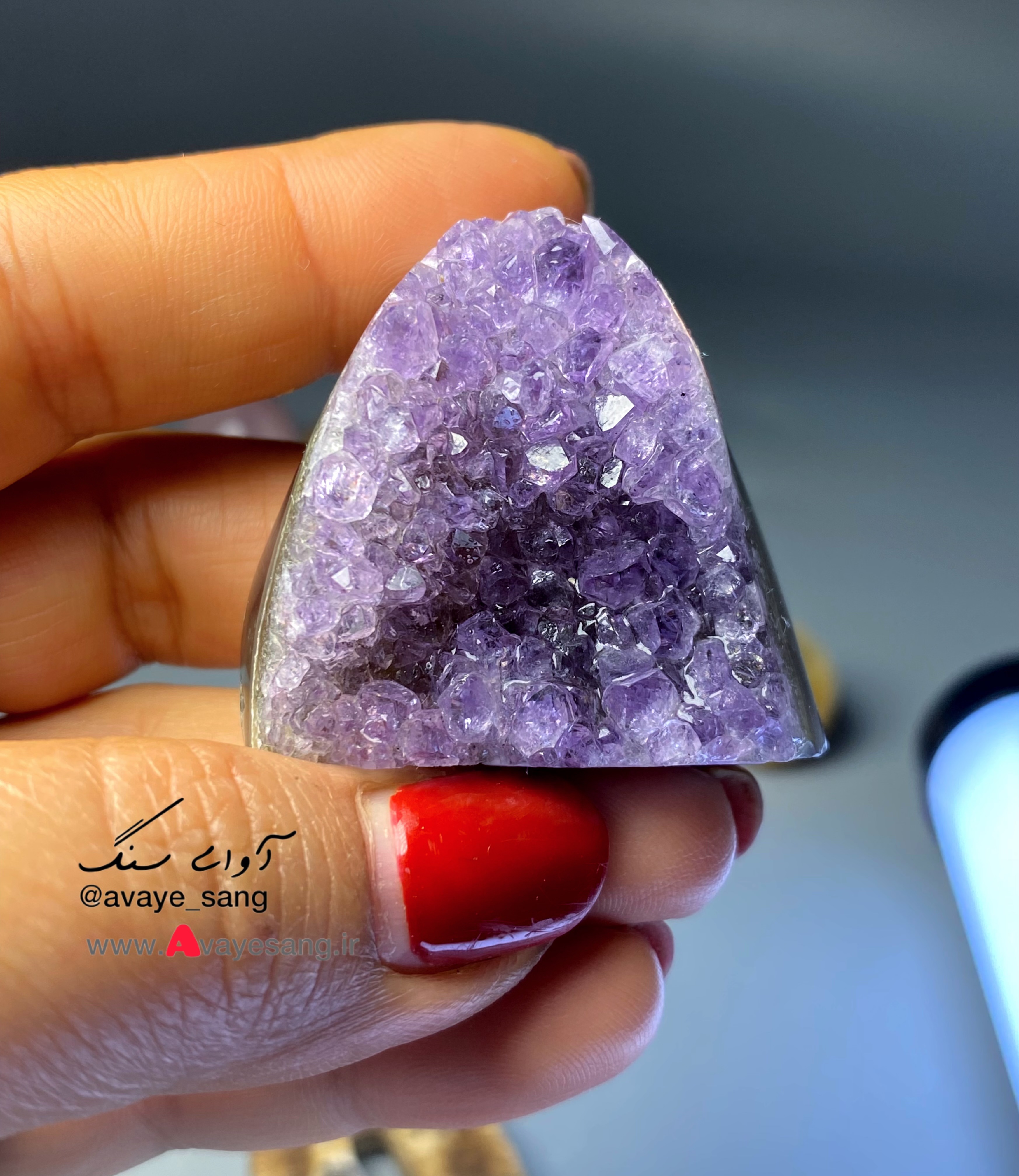 این راف آمیتیس بسیار خاصی هست ، لایه ای از عقیق شفاف وباکیفیتی پشت ژئودهای آمیتیس شکل گرفته که سنگ را خاص زیباتر کرده ، در ادامه عکسها ،تصویر آن را در دست نشان دادیم.