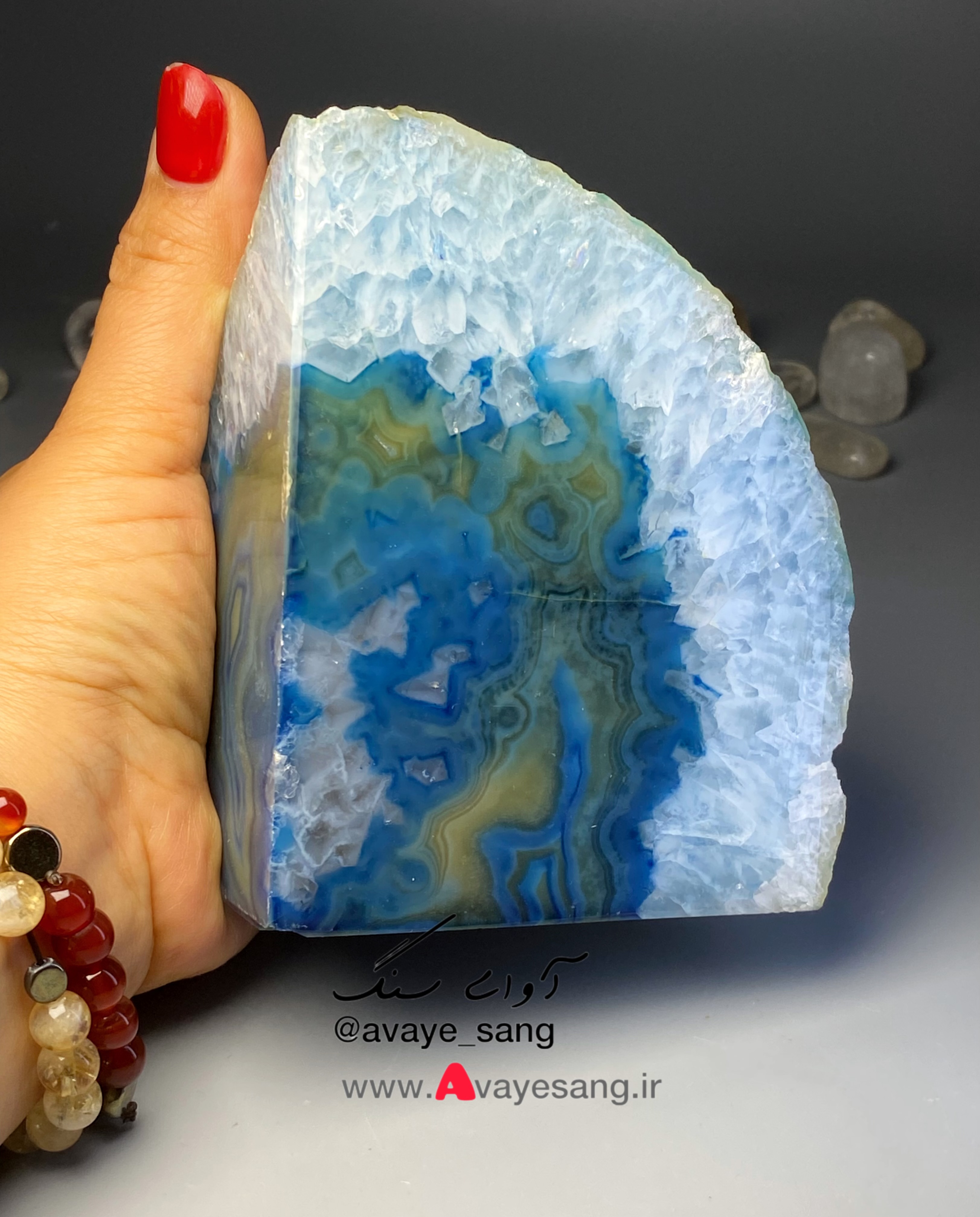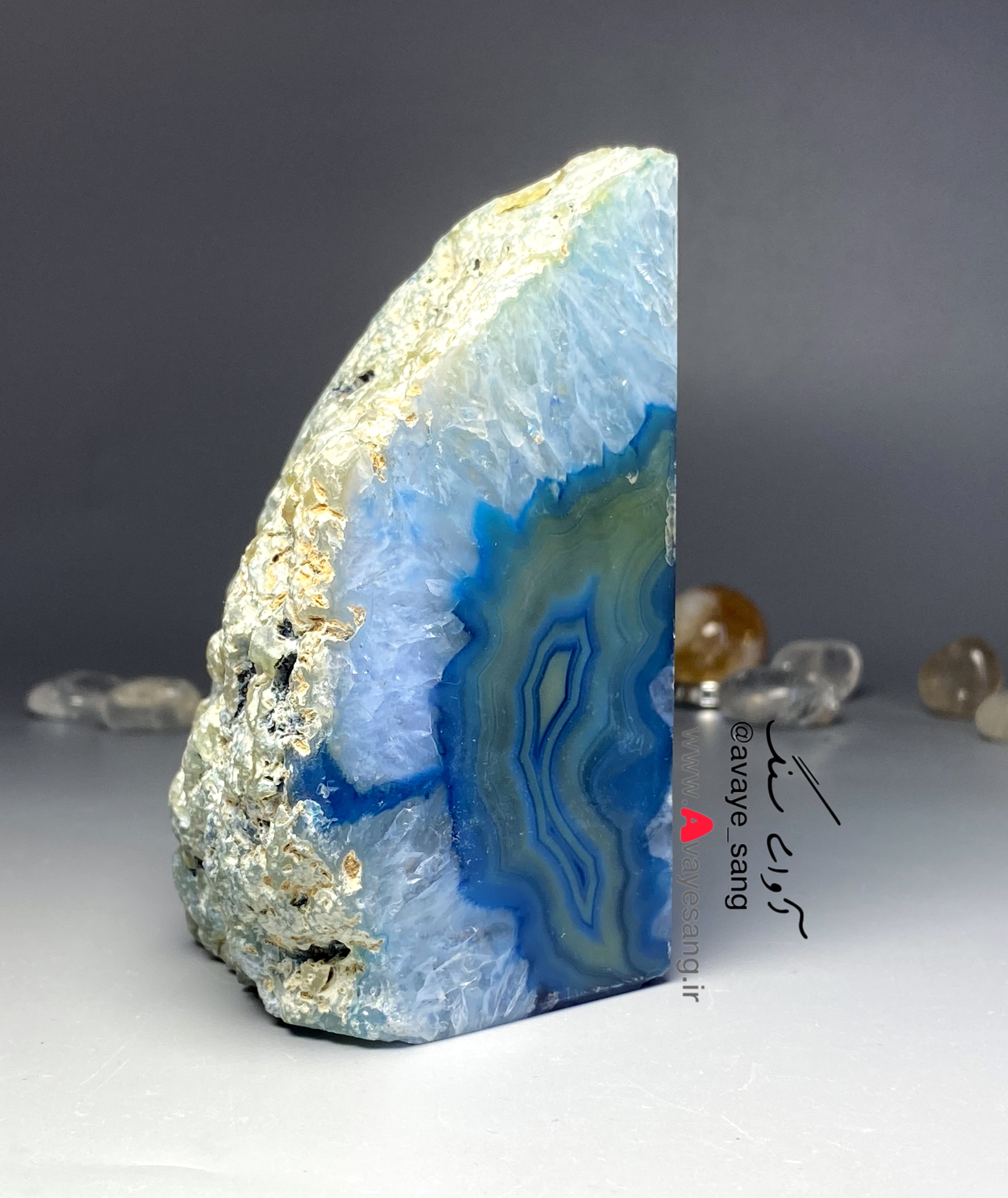 🔺عقیق آبی رنگ با ترکیب کمی زرد در مرکز سنگ قرار داره و حاشیه از کوارتز تشکیل شده