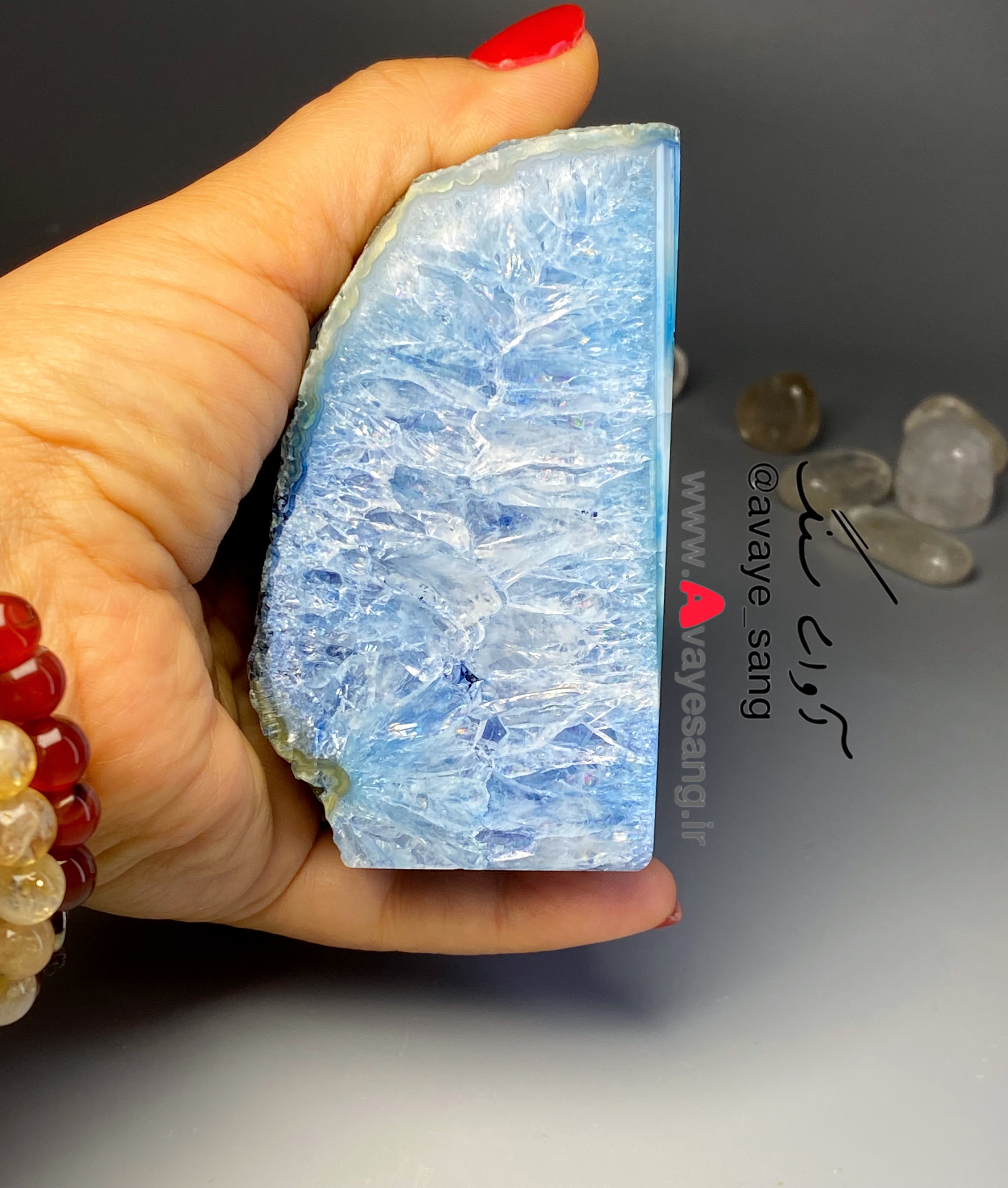 🔺این راف کوارتز عقیق دو سمت پولیش شده هست و ترکیب کوارتز وعقیق کنارهم بسیار زیباست