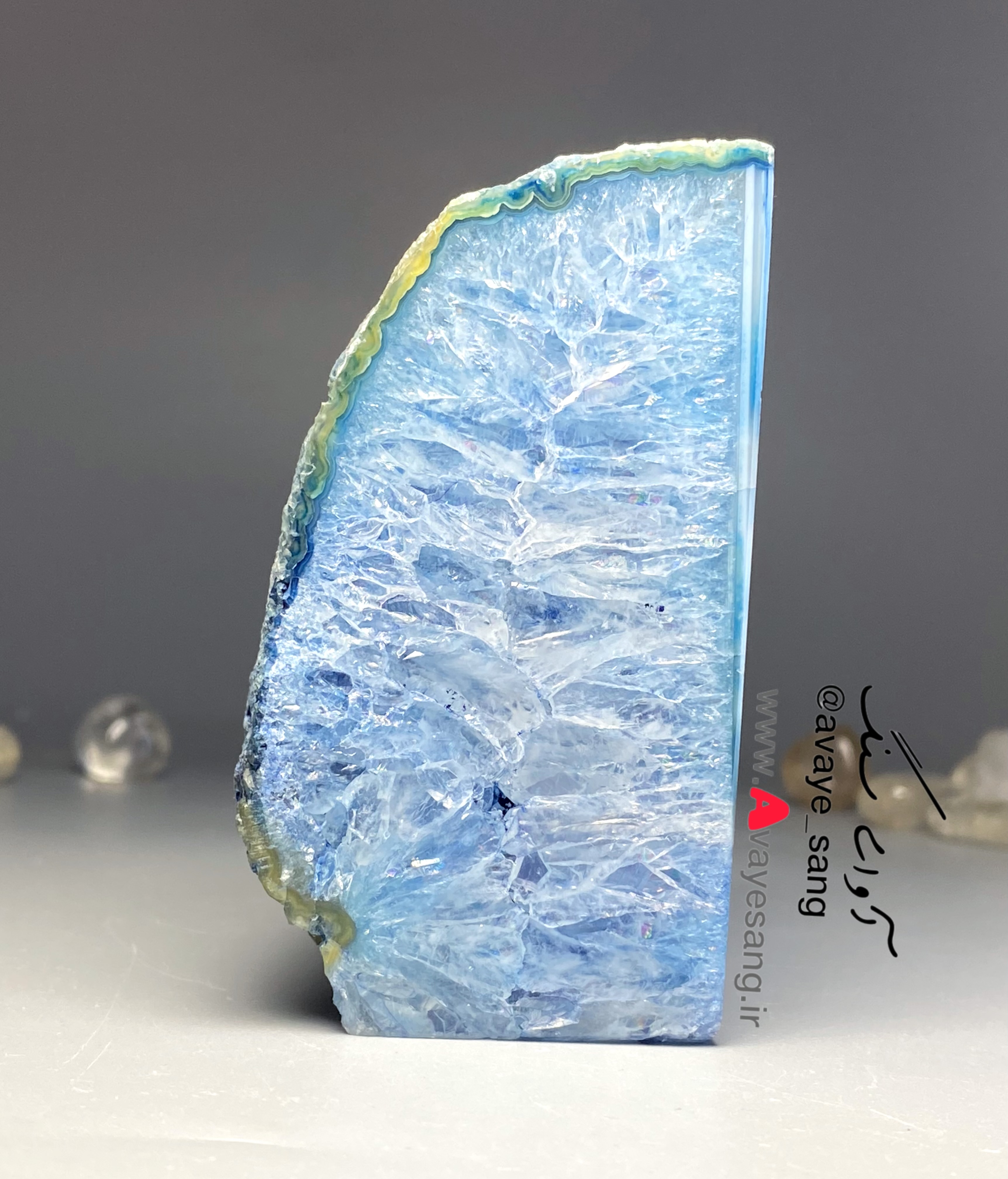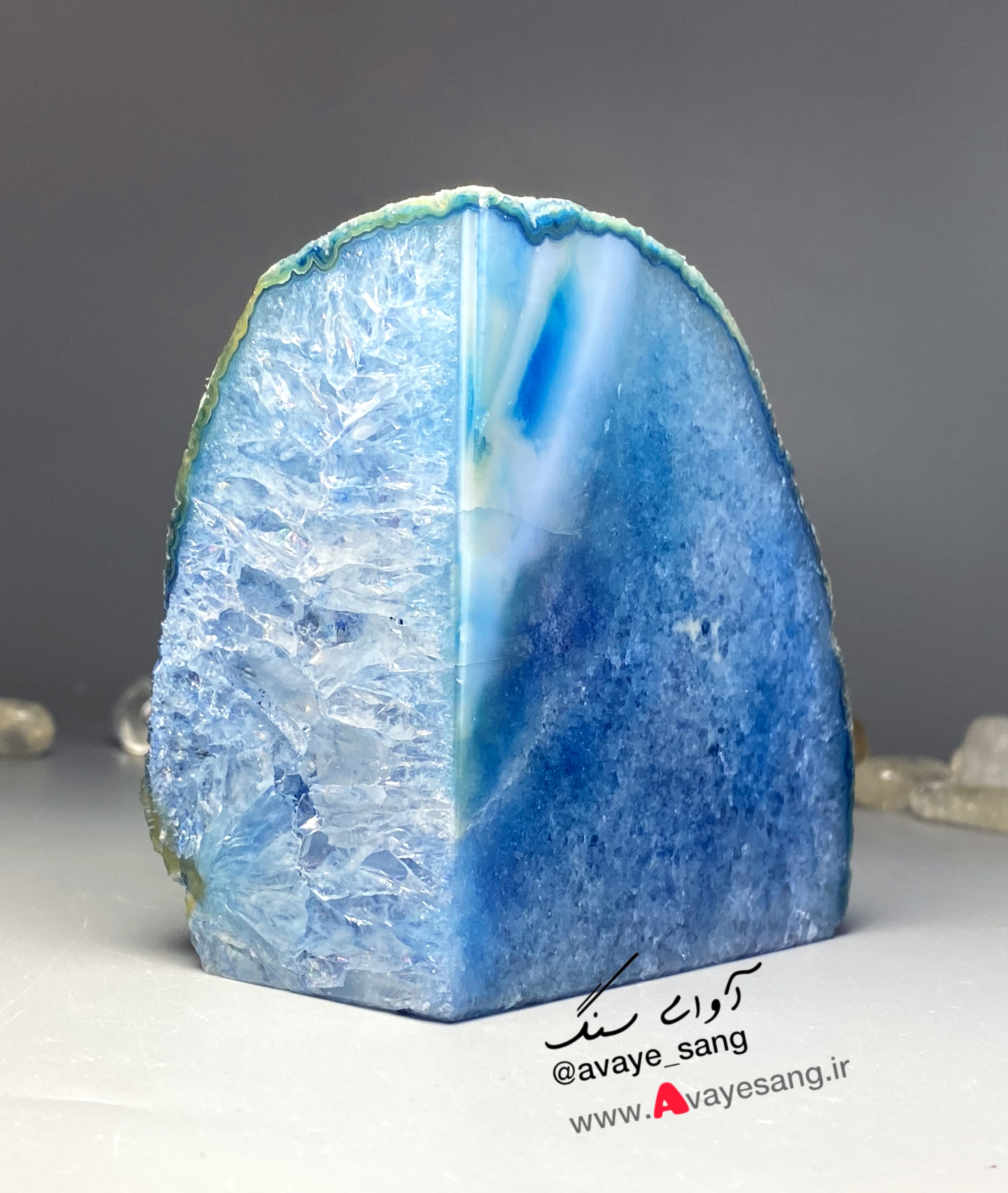 🟢سنگ راف کوارتز عقیق برزیلی آبی رنگ تک(دارای جفت نیست)