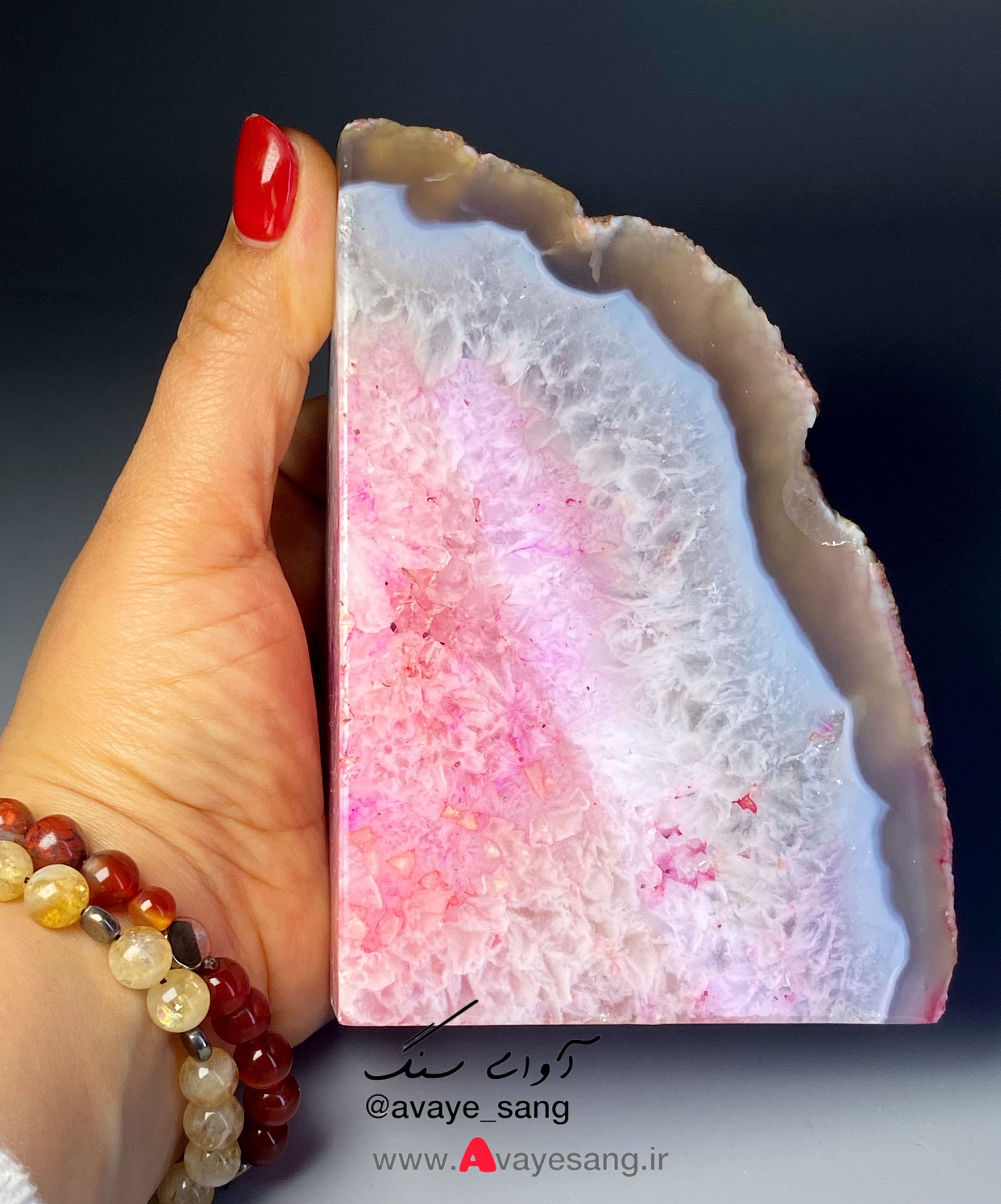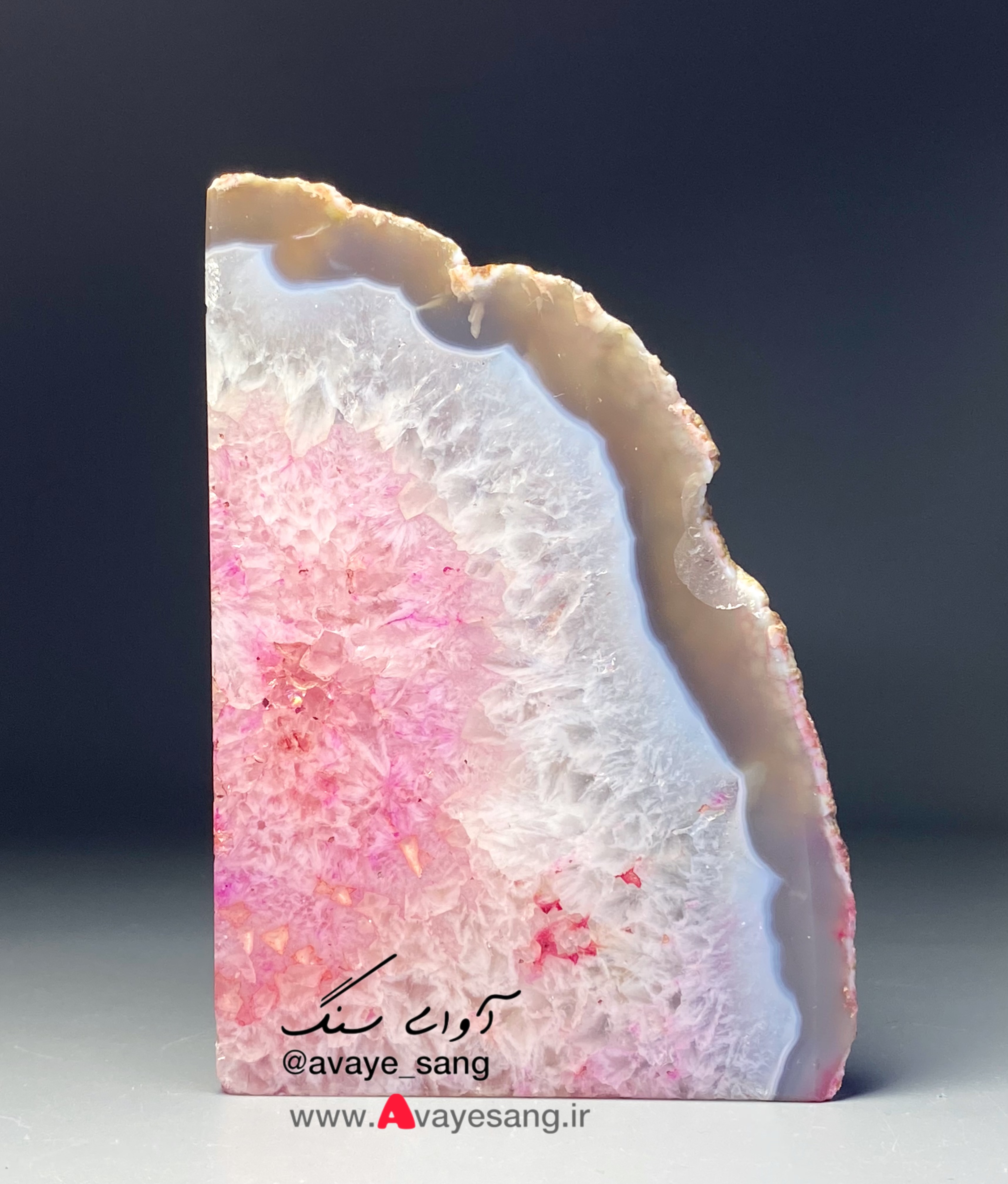 سنگ راف کوارتز عقیق برزیلی صورتی سفید با لایه نازکی از عقیق