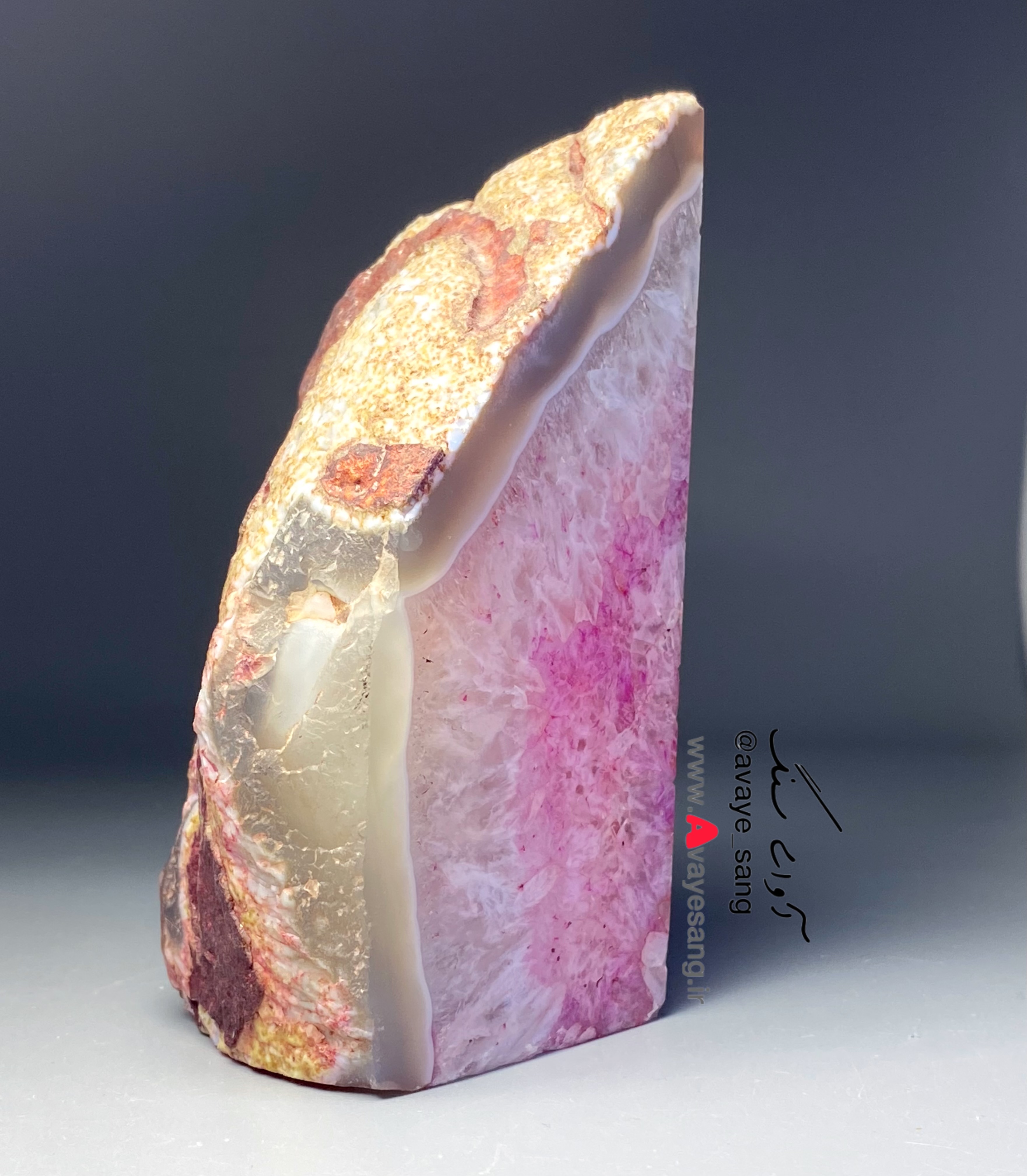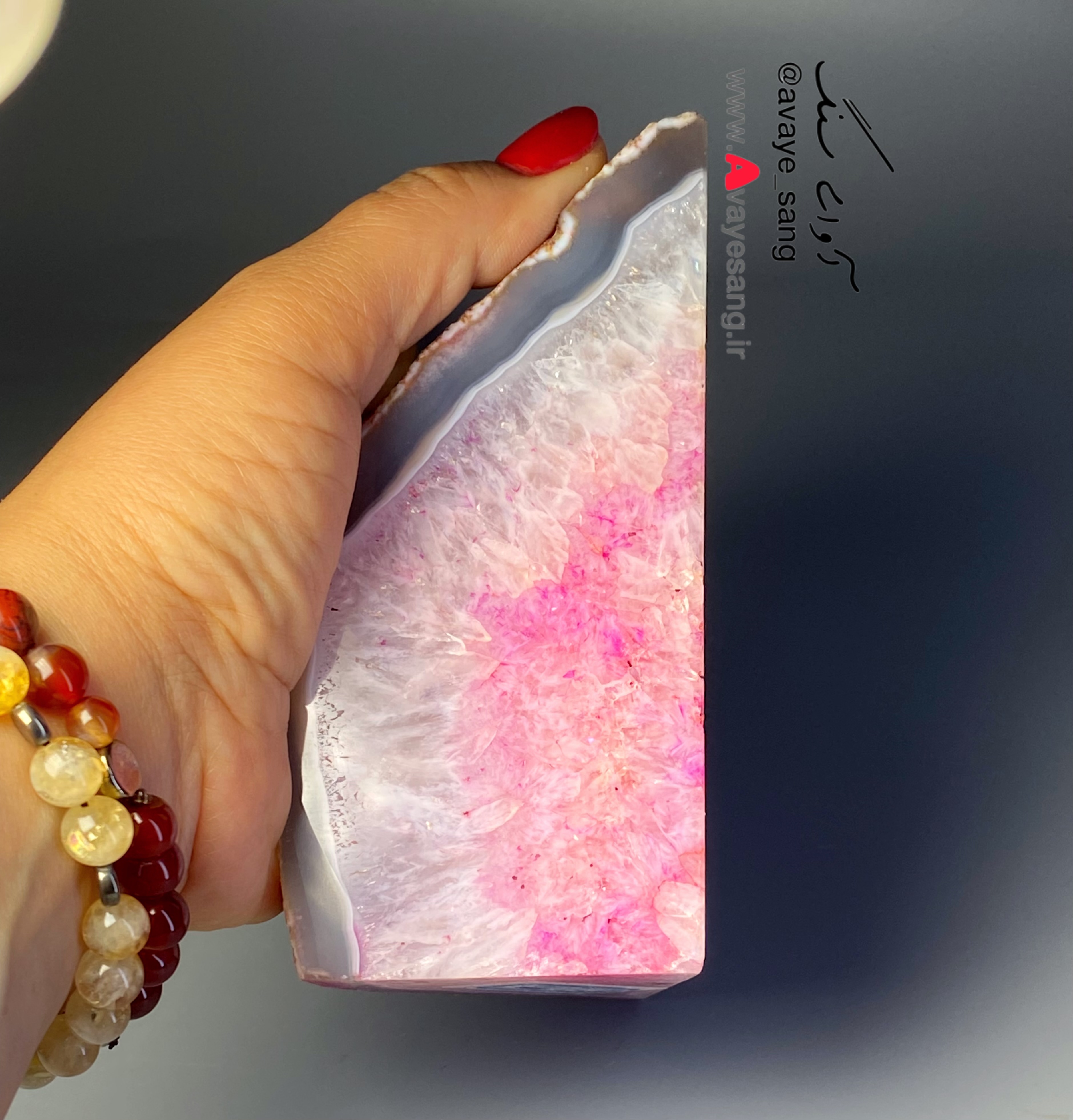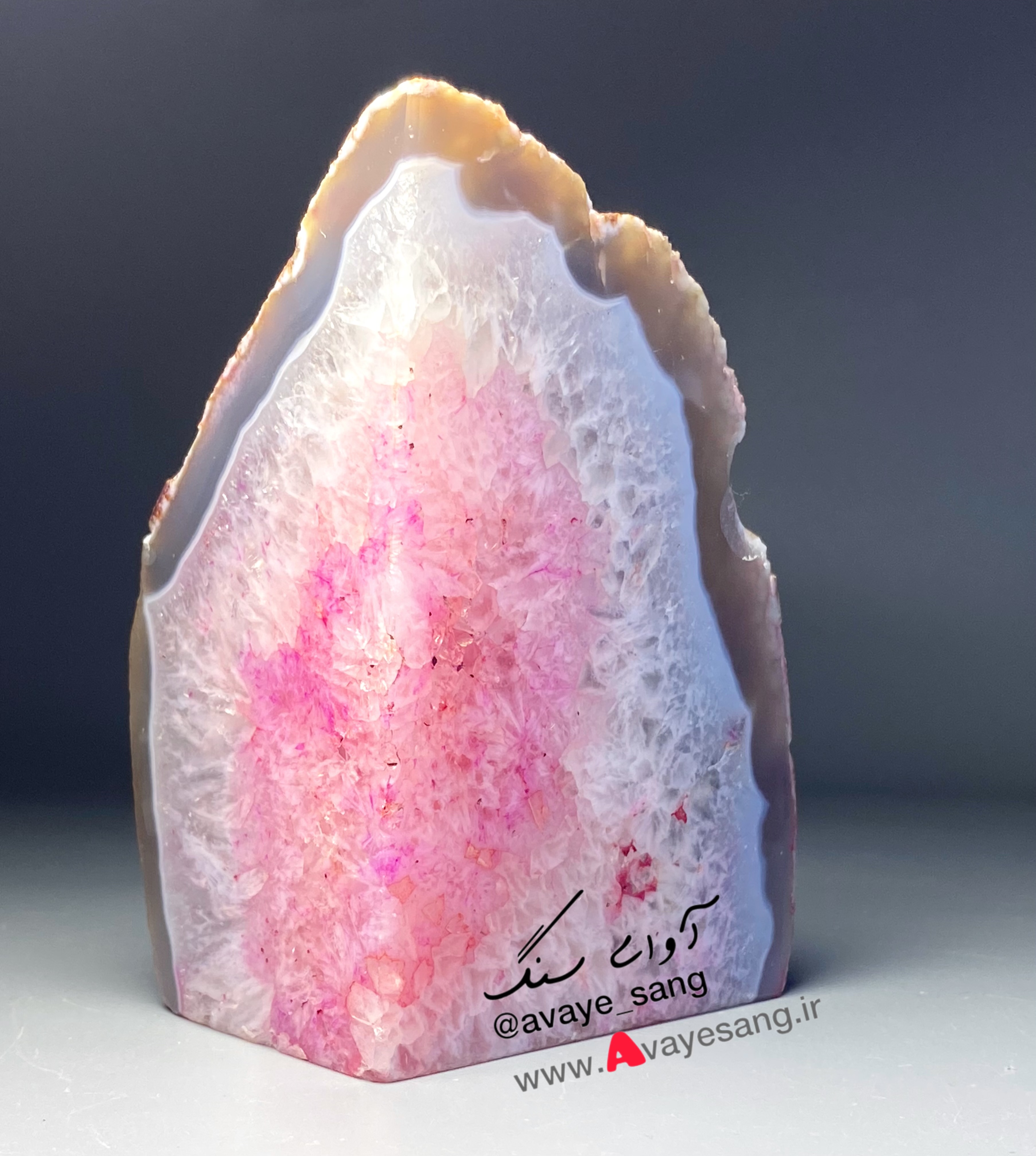سنگ راف کوارتز عقیق برزیلی صورتی با حاشیه عقیق ۷۷۶ گرمی تکی
